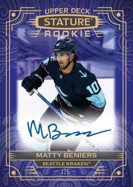 • With a multitude of base and insert sets - all elegantly-designed, colorful and on premium stock - as well as a bevy of hard-signed autographs and premium memorabilia, 2022-23 Stature will appeal to high-end, autograph, rookie, player and set collectors alike. There is something for everyone!