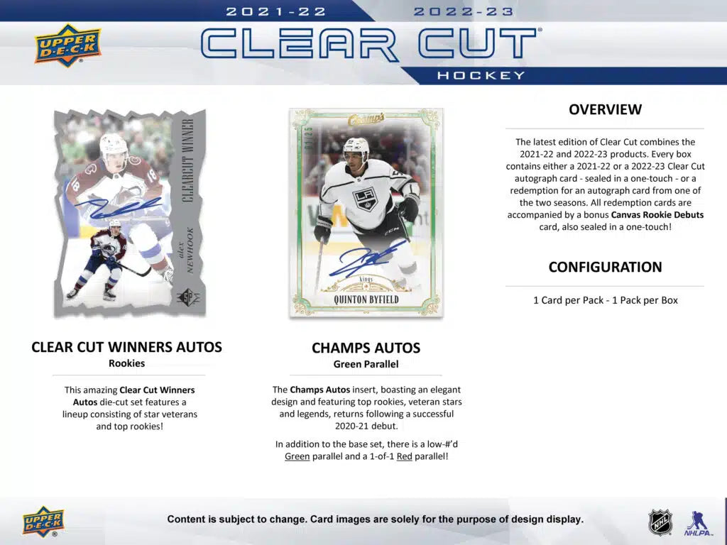 2021-22 & 2022-23 Upper Deck Clear Cut Hockey Hobby Box Master Case (30 boxes per Master)