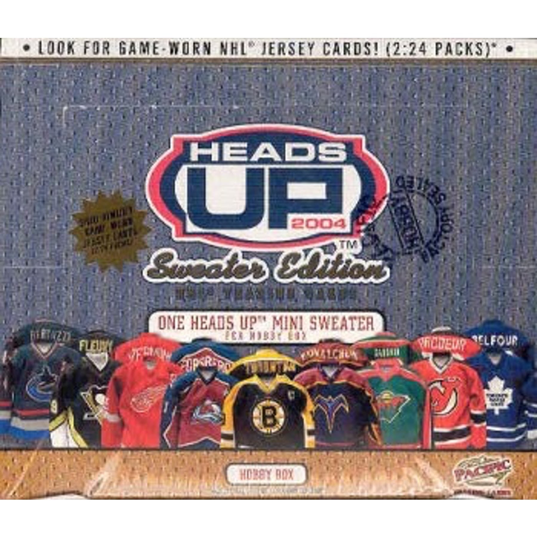 2003/04 Pacific Heads Up Hockey comes in with a new twist, a mini sweater per box!! Loaded with all of your favorite jerseys, parallels, and numbered rookies that you've come to expect from Pacific!! Get the mini jersey of your favorite star today!!
