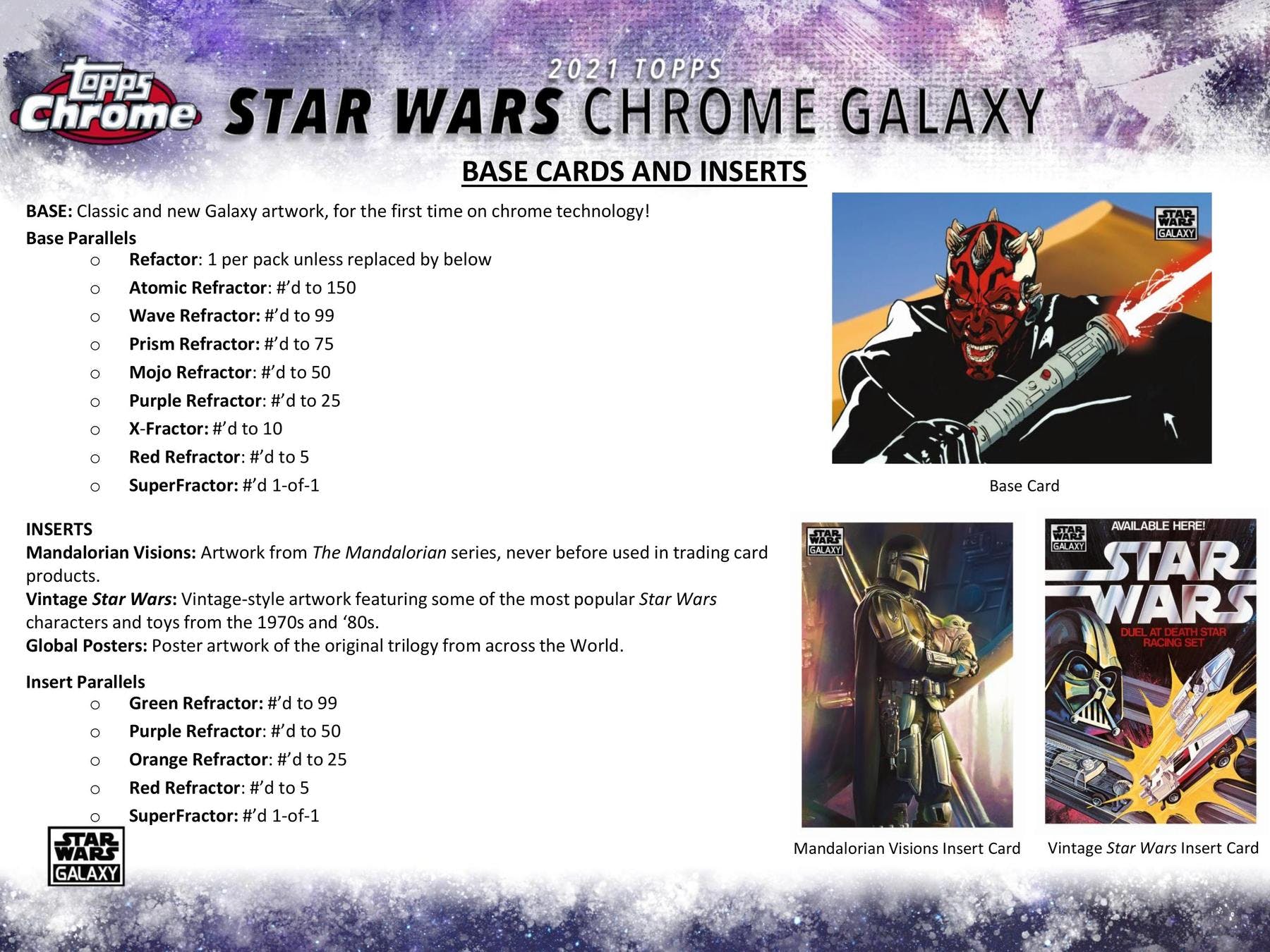 Base Cards: Classic and new Galaxy artwork, for the first time on chrome technology!