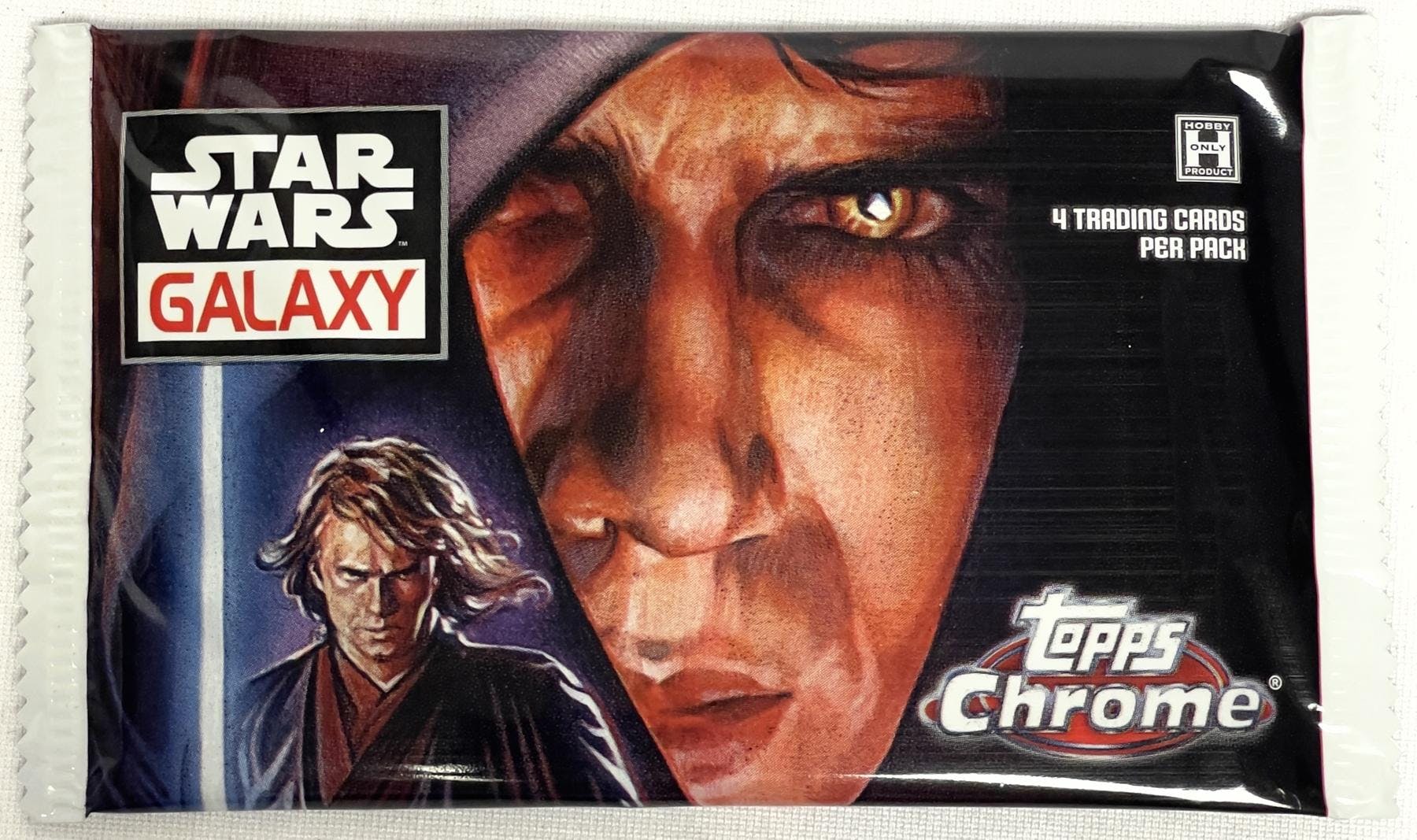 Star Wars Chrome Galaxy features classic artwork from all the previous Galaxy releases. Look for 100 base cards, 3 collectible inserts, autographs, and sketch cards! One autograph guaranteed per box, and 2 sketch cards guaranteed per case.