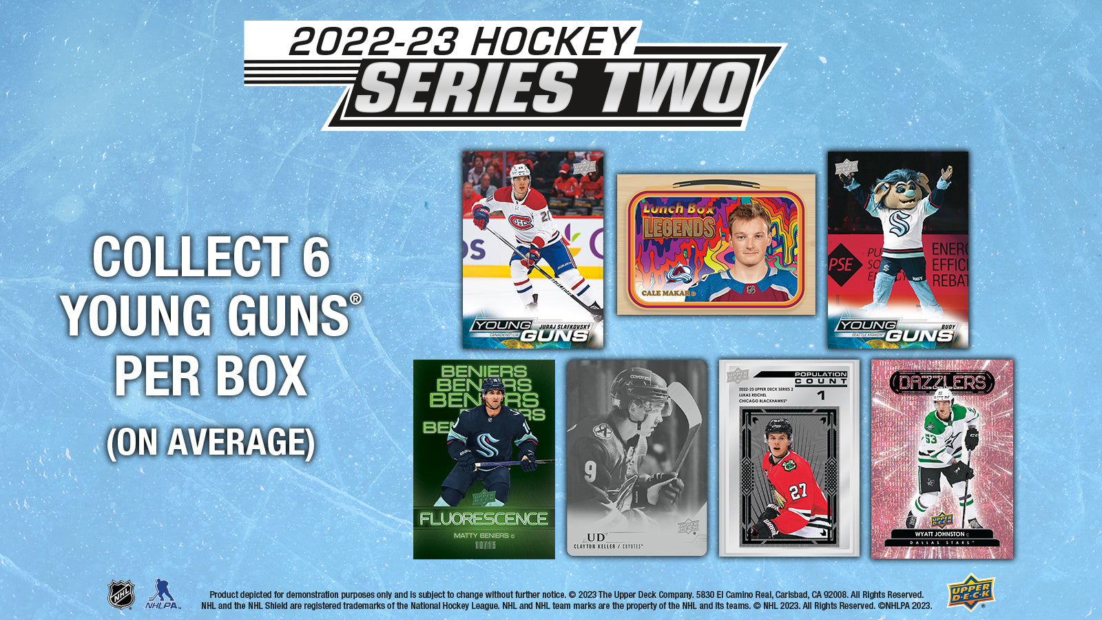 • Series 2 hosts the next 250 cards of the 2022-23 Upper Deck Base Set - 200 new veterans and 50 new Young Guns®, the most anticipated rookie cards of the year! Look
