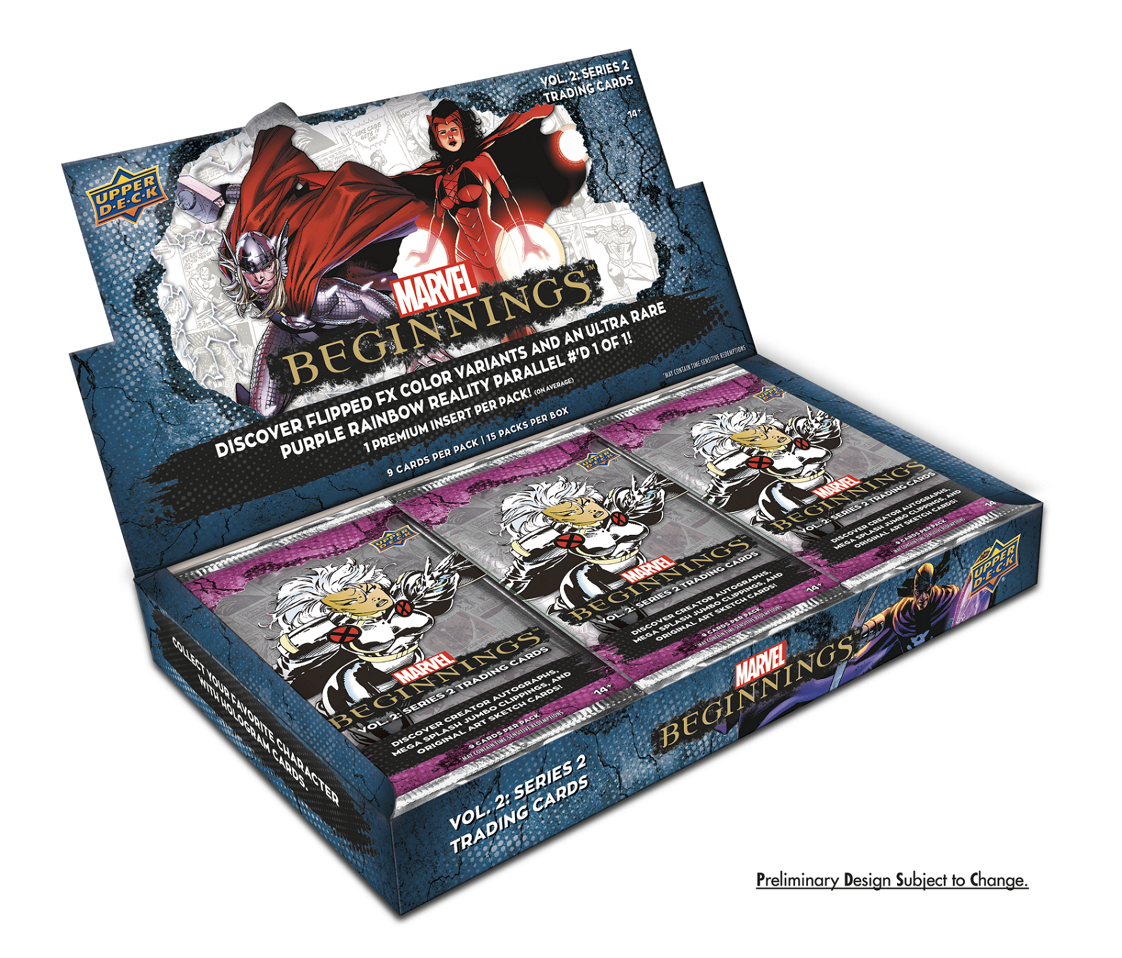Upper Deck is excited to announce another series to our beloved publishing set Marvel Beginnings Volume 2 series 2! Marvel Beginnings merges the throwback-inspired history of the Marvel Universe filled with everyone’s favorite characters. Ranging back from 1939 to the present day, with new technology and thematic designs to showcase fan-favorite characters, incredibly rare comic clippings, and creator autographs from Marvel Legends.
